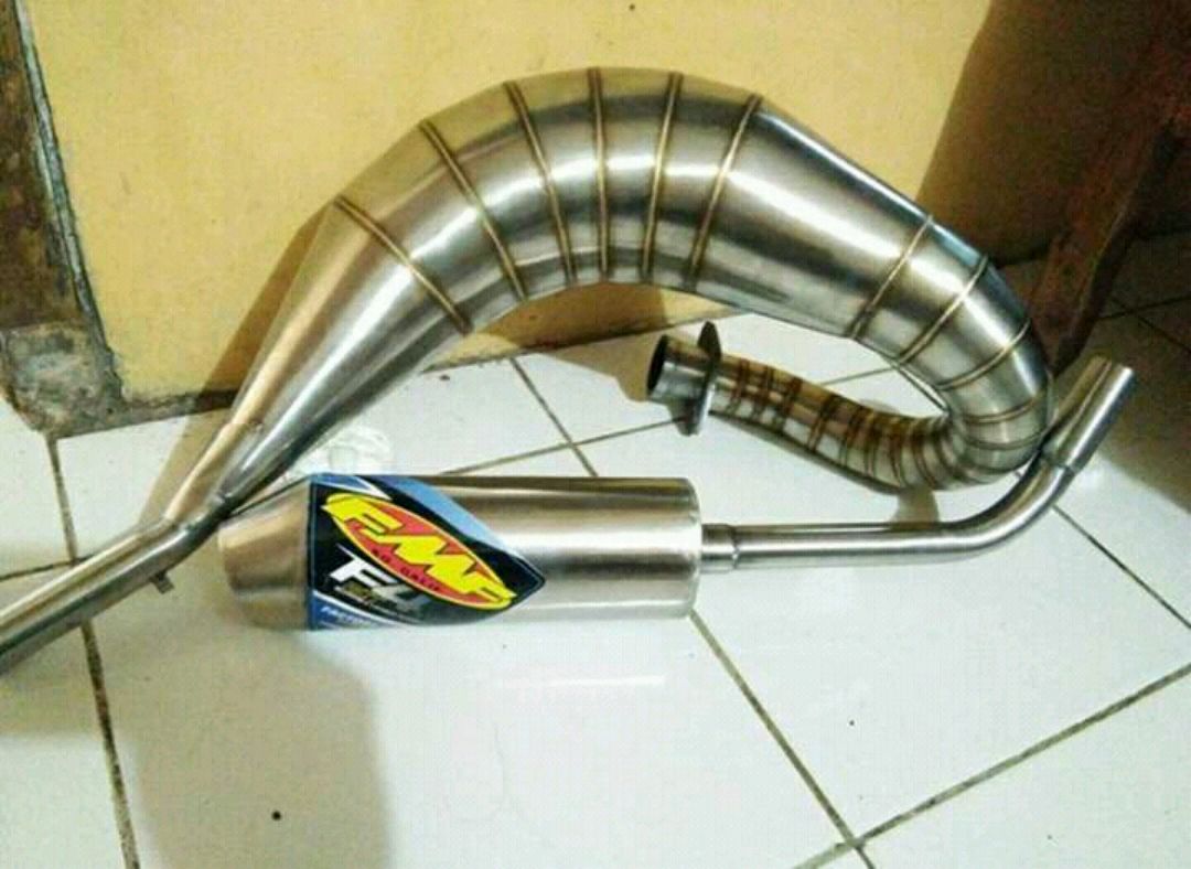 Selain soal estetika, knalpot ini juga bantu jaga back pressure mesin 2-tak supaya tenaga keluar lebih optimal.