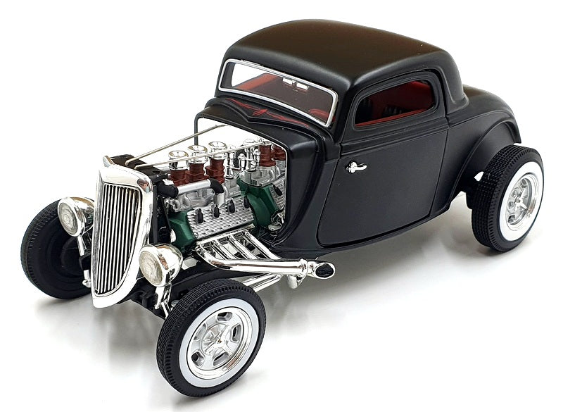 Miniatur diecast skala 1:18 ini adalah replika super detail dari Chevy 1934 Master Series. Bahannya metal alloy, pintu dan kap mesin bisa dibuka, dan detail interiornya dibuat semirip mungkin dengan versi asli.